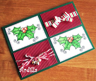 I used red microcorrugated cardstock. I used green cardstock for the background. I am very traditional with this card!!!!!!!