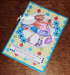 Fantastic frienship card! Love the imatge, that nice colouring, and the sentiment! Thanks for joining us at Colouring in Scrapland!