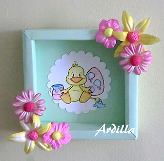 Great project, the box frame is a lovely colour and sets off your cute image perfectly. Thank you for sharing your work with all of us at Crafty Boots Challenges.