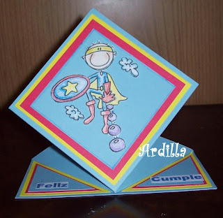 Como quería hacer tarjeta de cumpleaños para varones, usé en una Soccer Boy y el la otra Superhero, las dos son digistamps de Bugaboo.